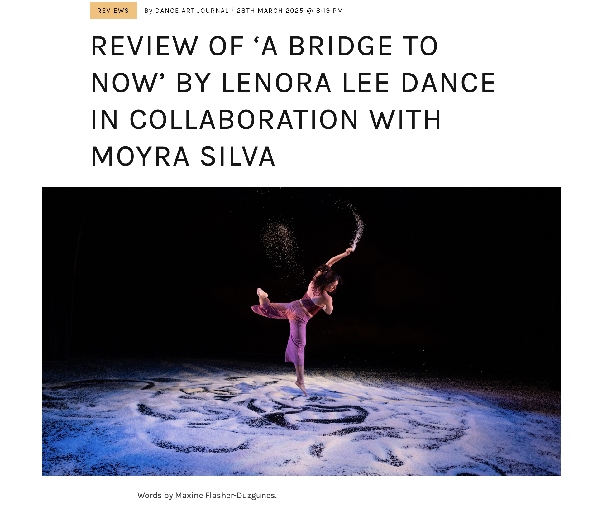 ‘A BRIDGE TO NOW’ by Lenora Lee Dance in collaboration with Moyra Silva, a review by Maxine Flasher-Duzgunes (Dance Art Journal)